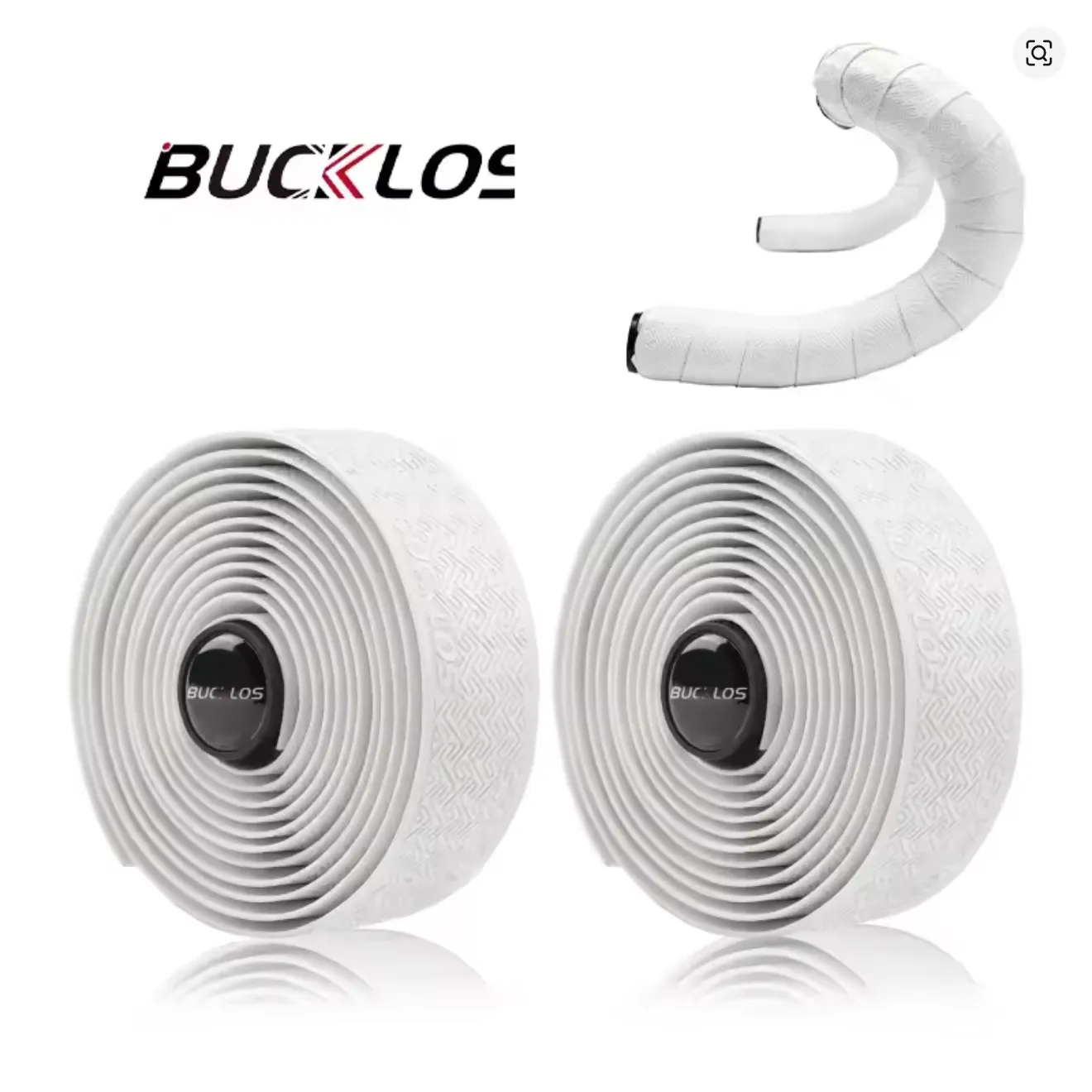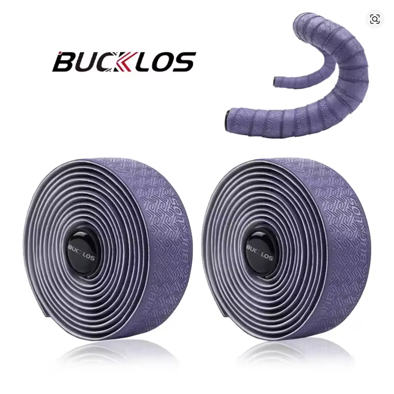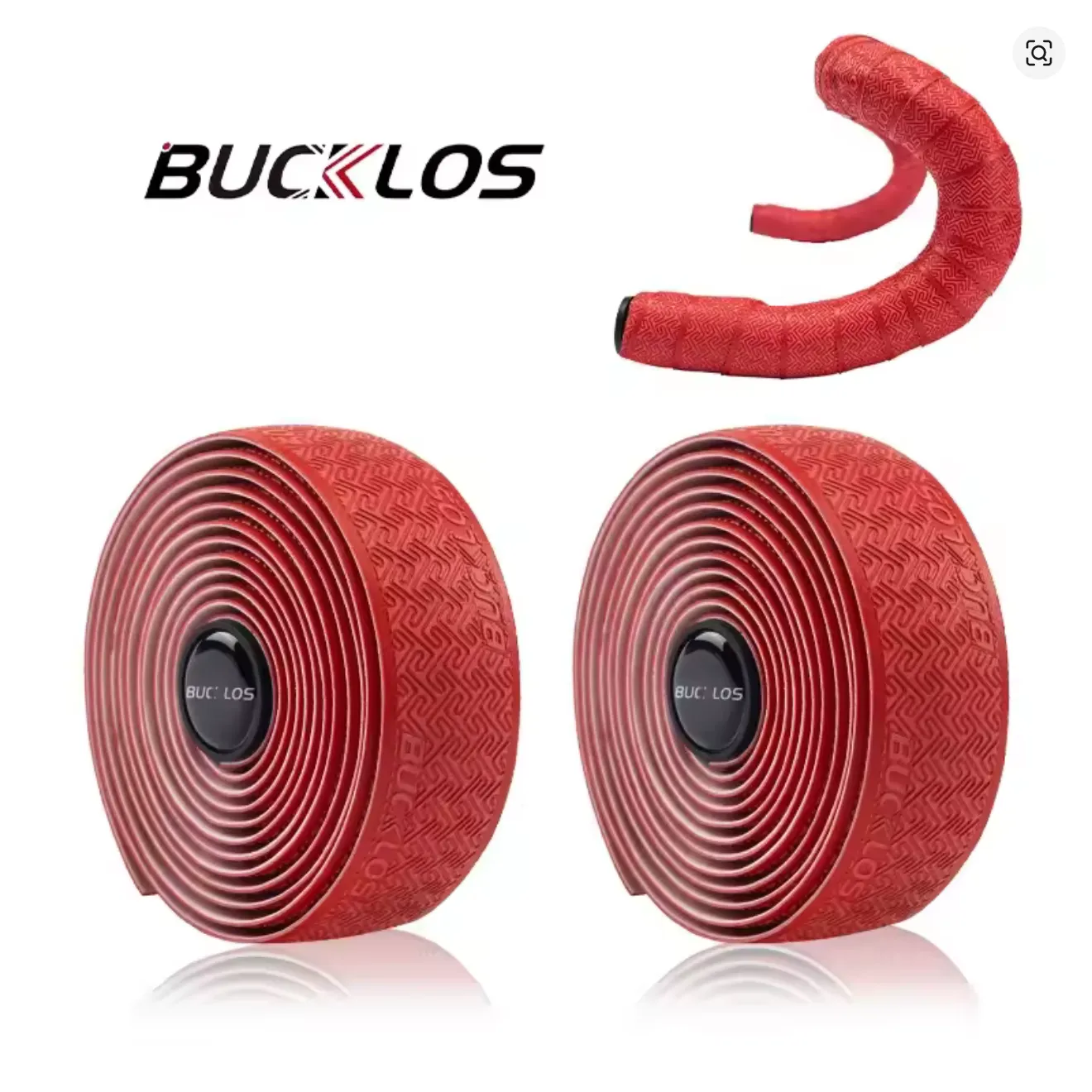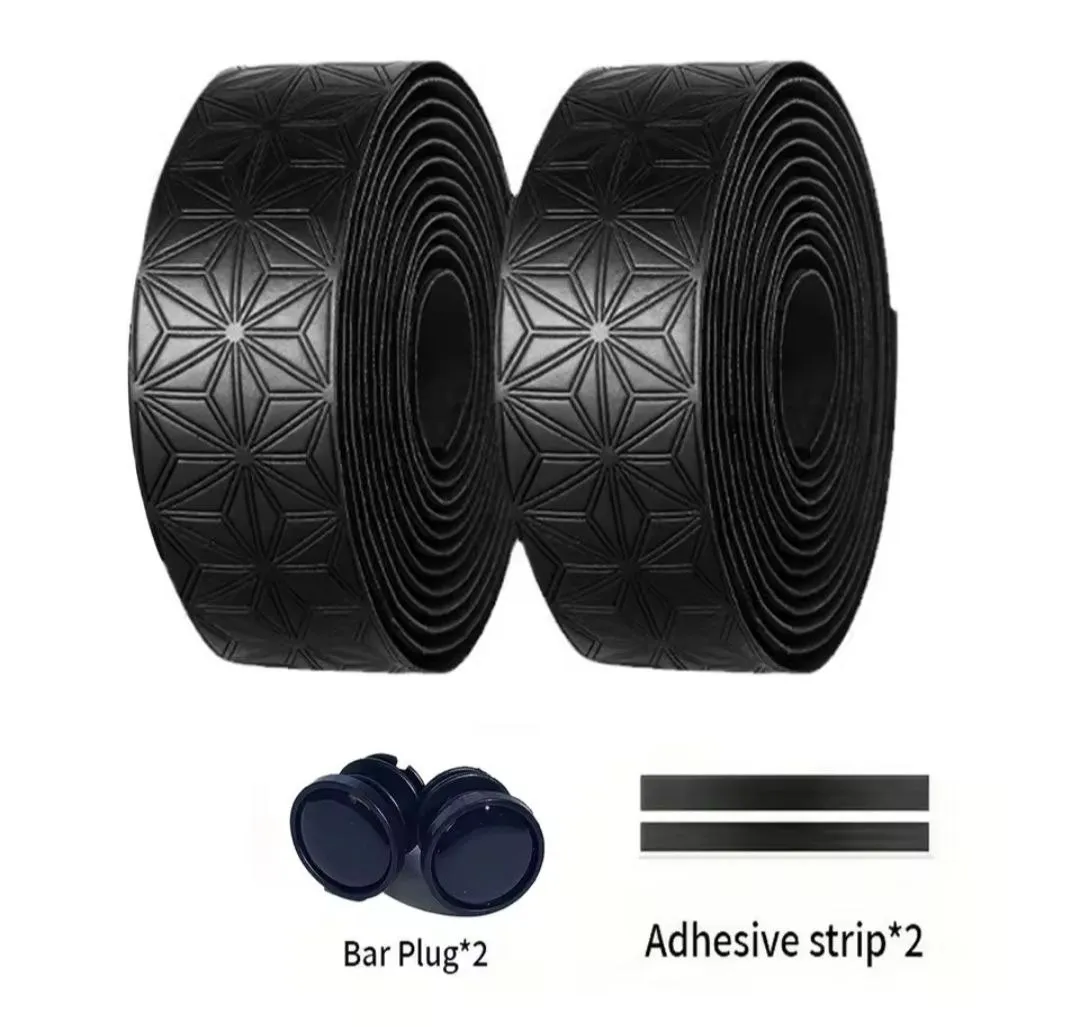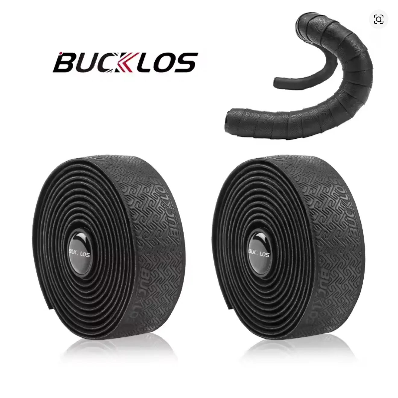 Cinta de tim贸n BUCKLOS en PU + EVA. Incluye 2 cintas, 2 tapones de manillar y 2 tiras adhesivas. Peso aproximado: 66.9 g/par.
